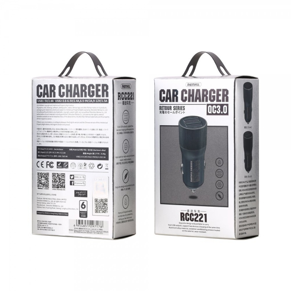 Avto polnilec REMAX Retour Series 2USB 2.4A QC 3.0 RCC221 zlat