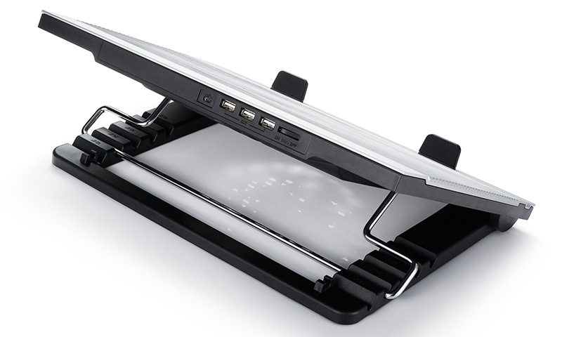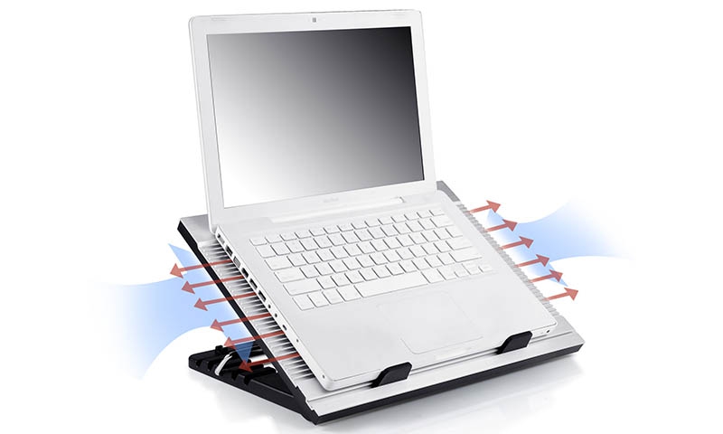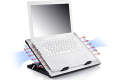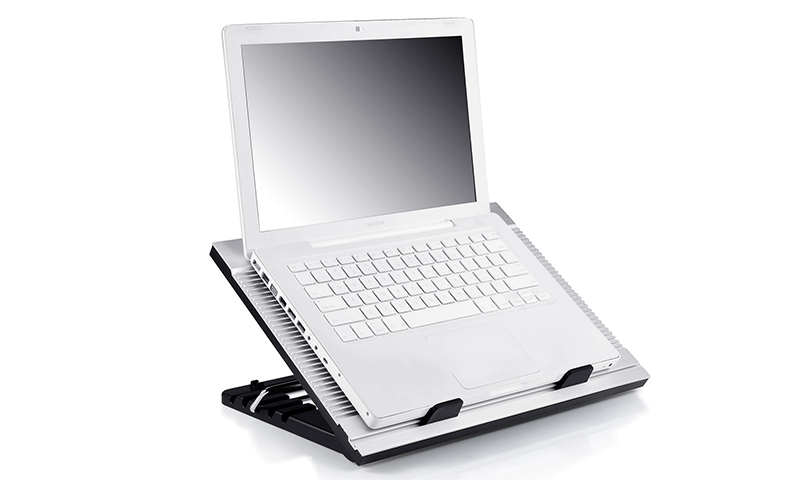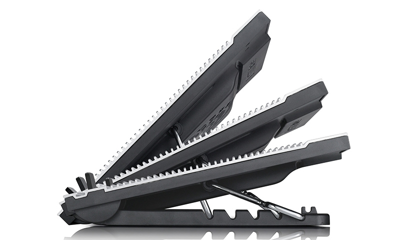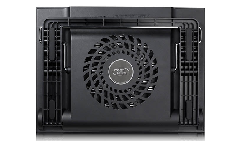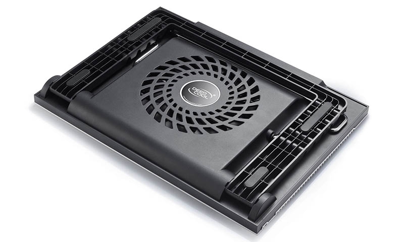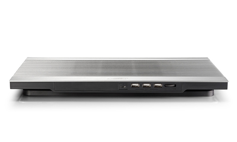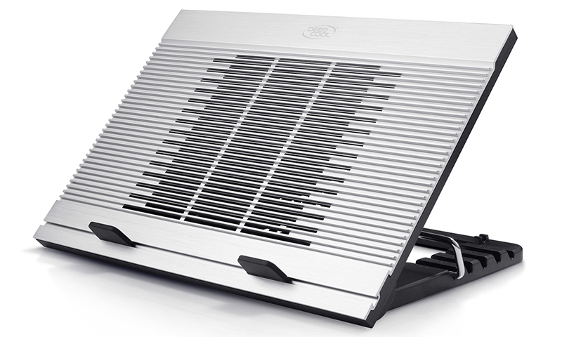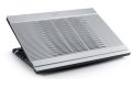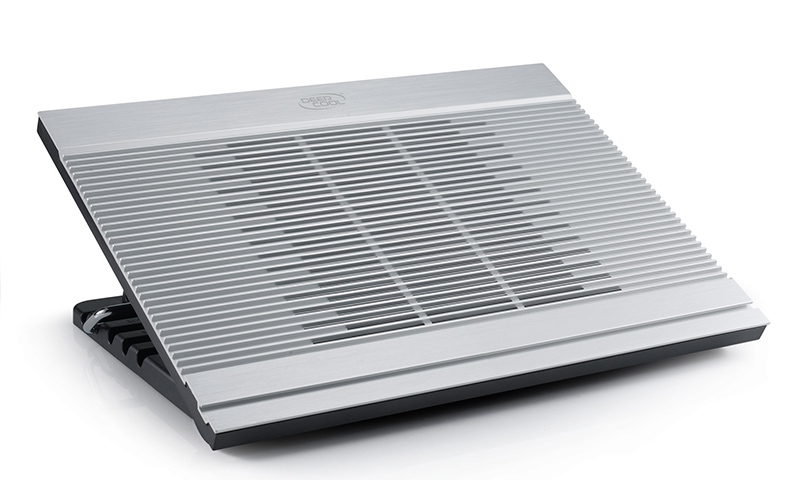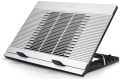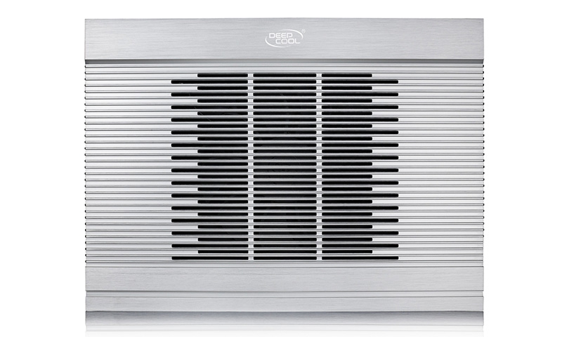 DEEPCOOL N9 SILVER je robusten hladilnik iz aluminijeve zlitine s tihim 180 mm ventilatorjem (600–1000 RPM) in nastavljivo hitrostjo. Ima 6 stopenj nagiba, 4x USB priklope in učinkovito hlajenje pri 16–20 dB(A). Dimenzije: 380 × 279 × 34 mm, teža: 1,7 kg.