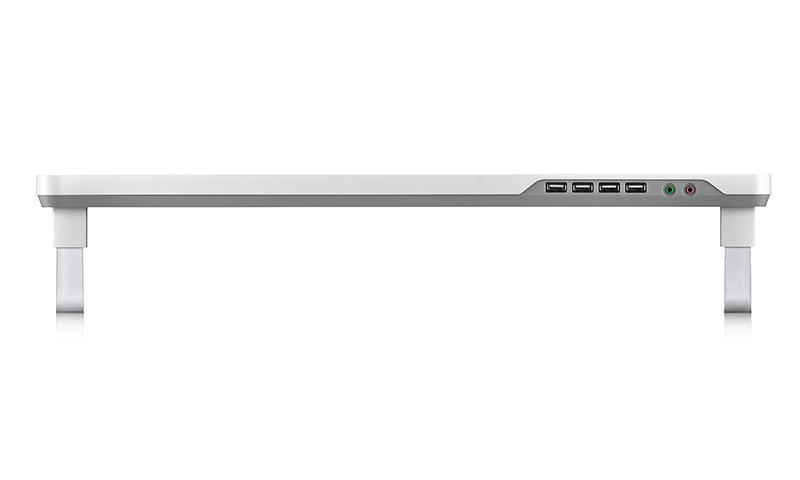 DEEPCOOL M-DESK F1 je robustno stojalo iz aluminijeve zlitine z nastavljivo višino (7,5 ali 10,4 cm), 4x USB 2.0 priklopi ter audio vhodi za slušalke in mikrofon. Nosilnost do 10 kg, primerno za prenosnike do 27". Dimenzije: 550 × 230 × 24 mm, teža: 1098 g.