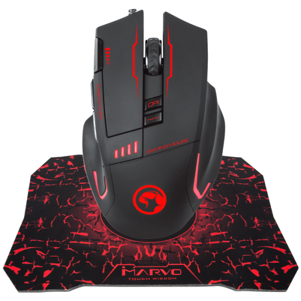 MARVO G909L je ergonomska optična gaming miška z nastavljivim DPI do 7200, 8 programabilnimi gumbi in RGB osvetlitvijo (7 barv). Priložena G1 podloga ima visoko gostoto, protizdrsno podlago in zasnovo proti vihanju. Idealna kombinacija za natančno igranje.