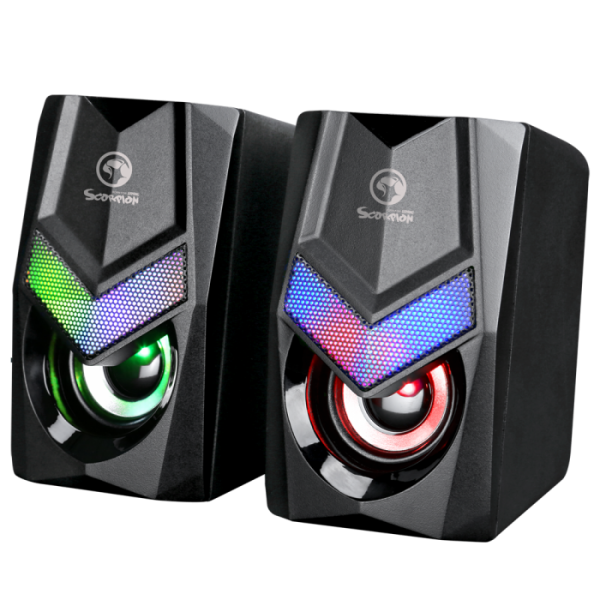 MARVO SG-118 so kompaktni gaming zvočniki z močjo 2 × 3W, frekvenčnim odzivom 150 Hz – 20 kHz in impedanco 4 Ω. Priključki: 3,5 mm za zvok in USB za napajanje. Dolžina kabla 1,2 m. Idealni za izboljšano zvočno izkušnjo pri igranju in vsakdanji rabi.