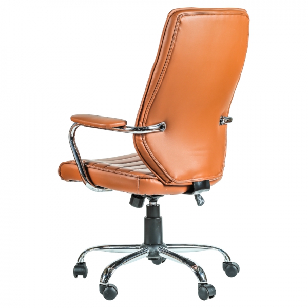 Elegantni pisarniški stol v svetlo rjavi barvi nudi udobje s penastim sediščem, oblazinjenimi nasloni za roke ter nastavljivo višino in nagibom. Stabilna baza s 5 koleščki, Class 3 plinska vzmet, nosilnost 130 kg, teža 21,5 kg – idealen za dolgotrajno delo.