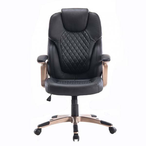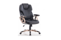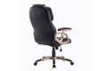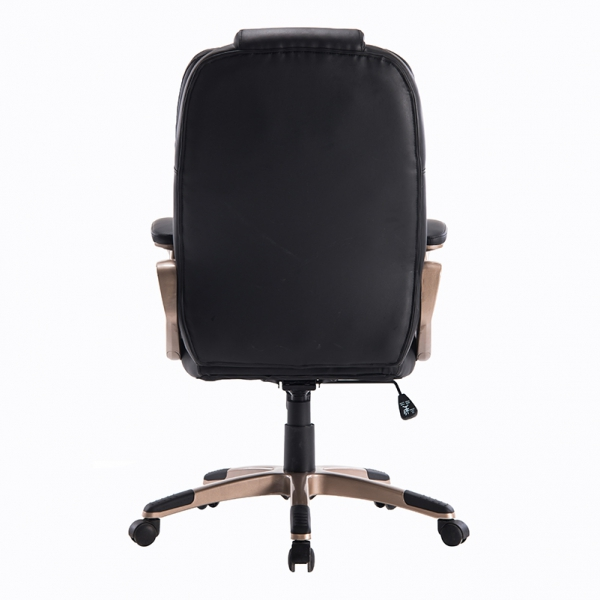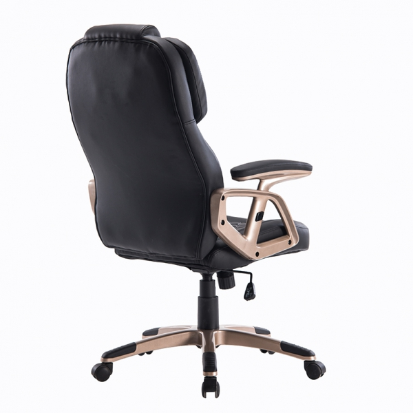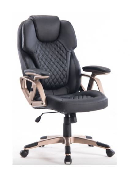 Črn pisarniški stol iz tekstilnega usnja s penastim sediščem, nastavljivo višino in nagibom ter oblazinjenimi, prilagodljivimi nasloni za roke. Trpežna baza s 5 koleščki, Class 3 plinska vzmet, nosilnost 130 kg, teža 15 kg – udobna izbira za delo.